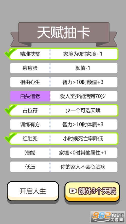 4、人生也会呈现不同的面貌,获得更多选择,选择合适的天赋,调整各种属性;