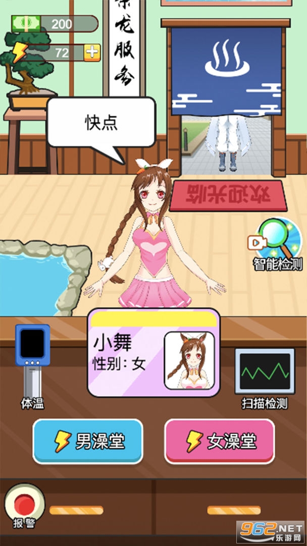 老乡洗个澡是一款休闲模拟类游戏,根据来者的身份证分配男女澡堂,顺利完成一条龙服务可以为店铺获取收益。你可别想的太简单了哦,他们会出各种小心思,你要提高警惕呀。