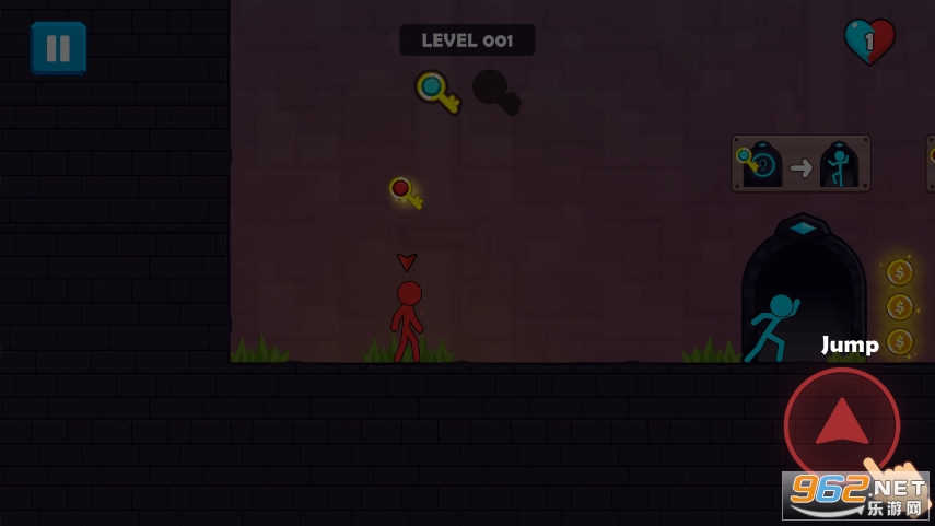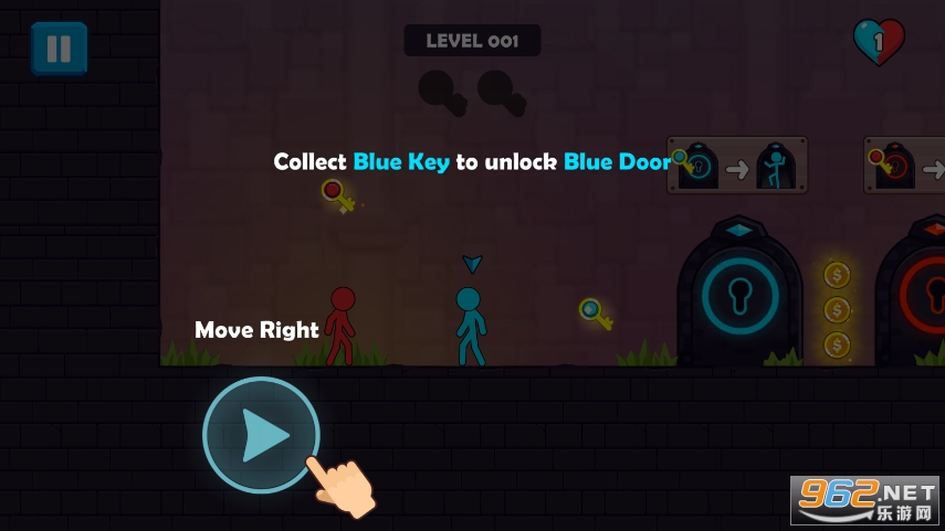 《红与蓝火柴人》是一款令人上瘾的益智游戏,您必须同步两个角色。同时控制两个火柴人,并使用按钮移动,推动箱子并收集硬币以到达森林的出口。