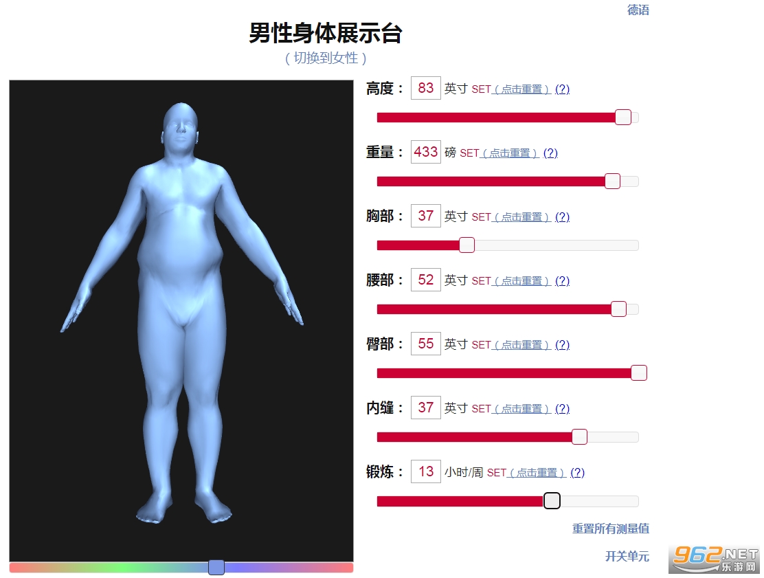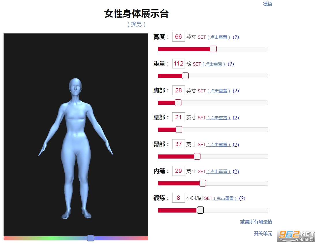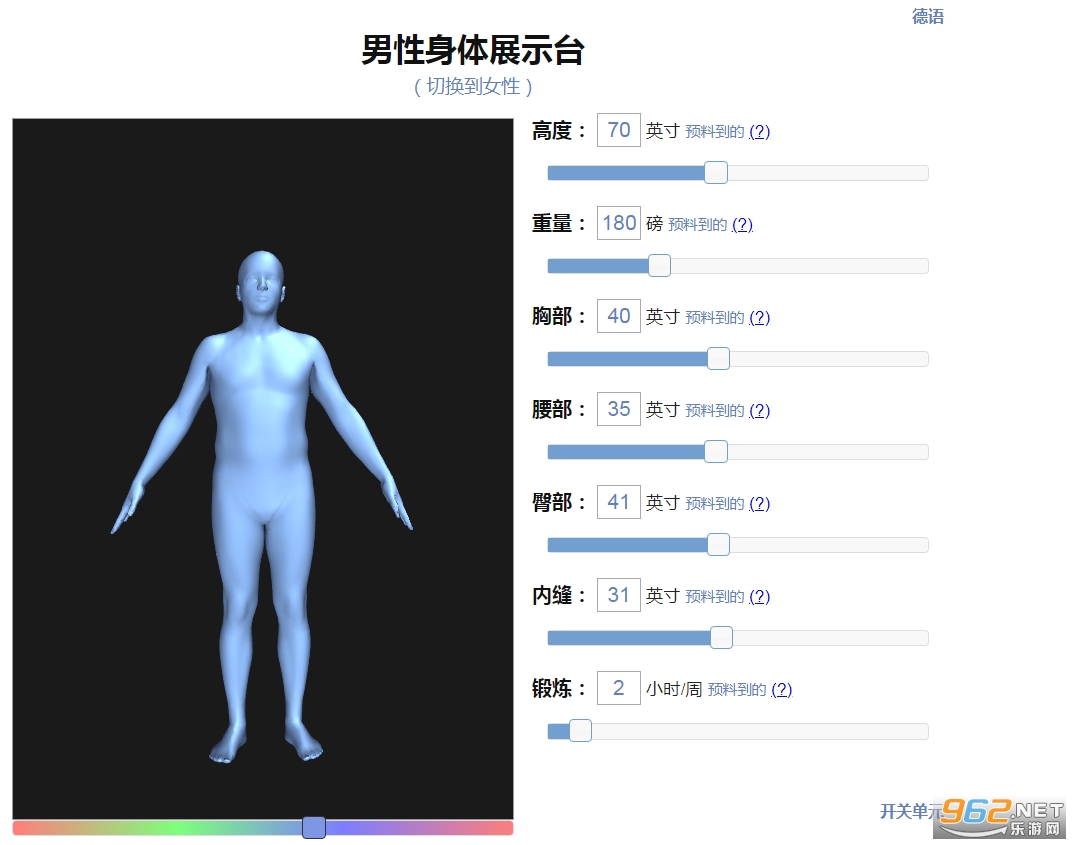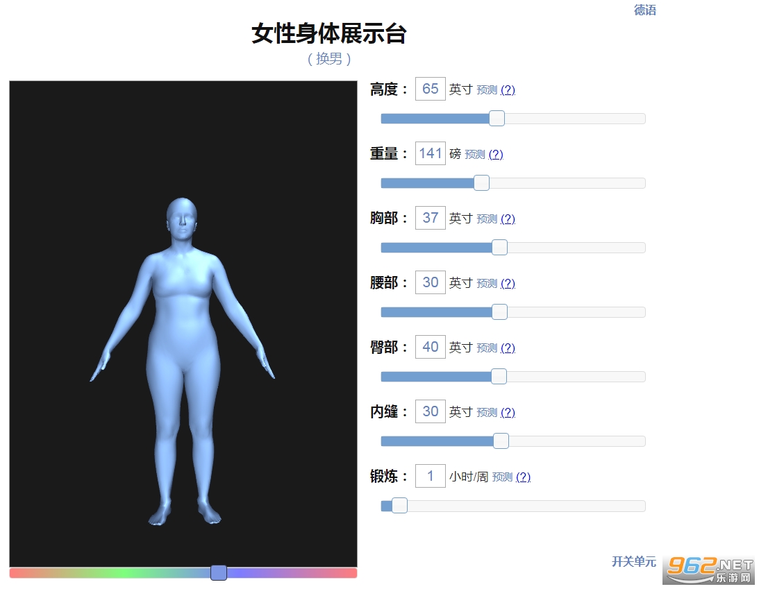 《人体可视化仪》是一款可以通过输入你的体型的数值然后直接生成对应的模型的工具,工具的使用方法还是很简单的,用起来的感觉也是很不错的哦,这个网站本身不自带中文翻译,需要各位用一些可以自动翻译的浏览器打开,比如小编用的就是谷歌浏览器可以直接翻译,直接在网页上进行操作哦。