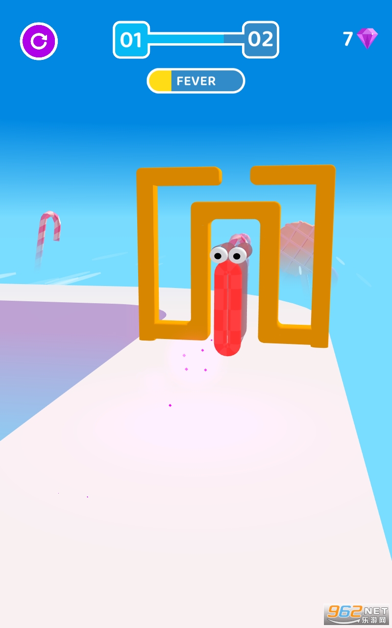果冻的颜色非常显眼,穿着障碍的时候可以预测,记忆几个动作,连续变形。