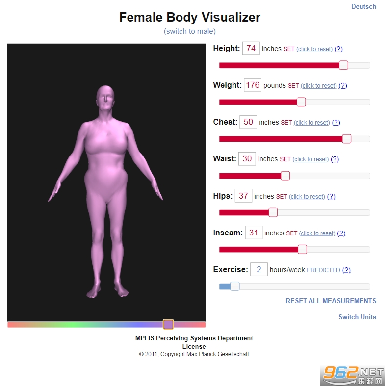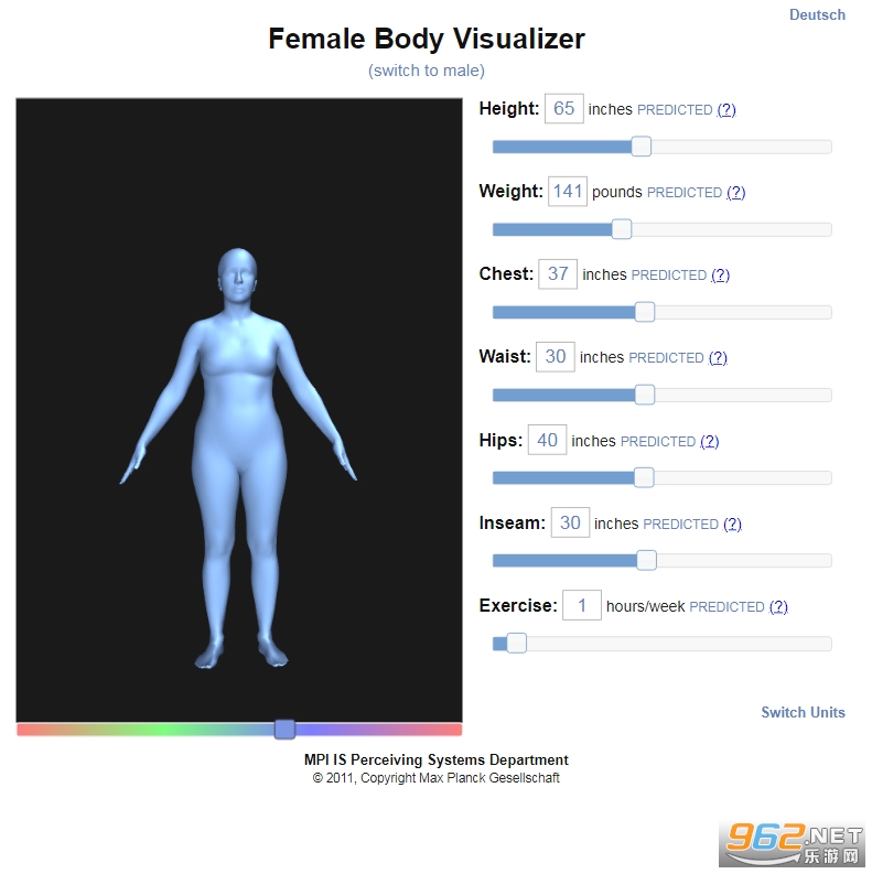 2、通过这个网站能够方便的展示,通过输入个人的身高、体重、三维、上下比例等参数自动生成三维体态;