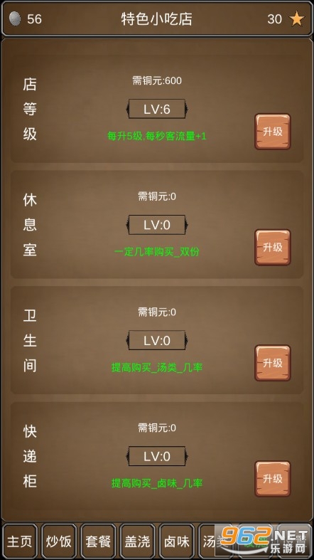 --对自己的店铺进行各方面的升级,优秀的餐厅可以提高食物的收益。