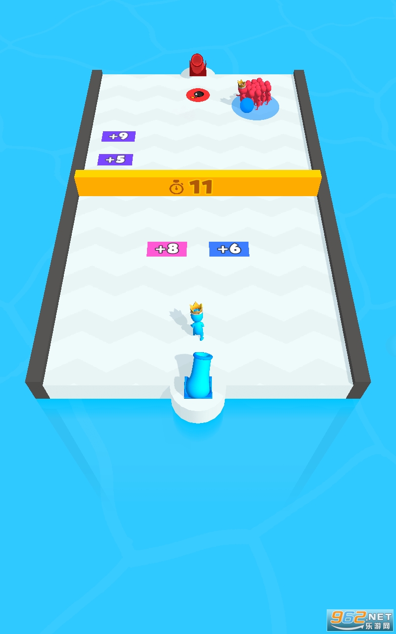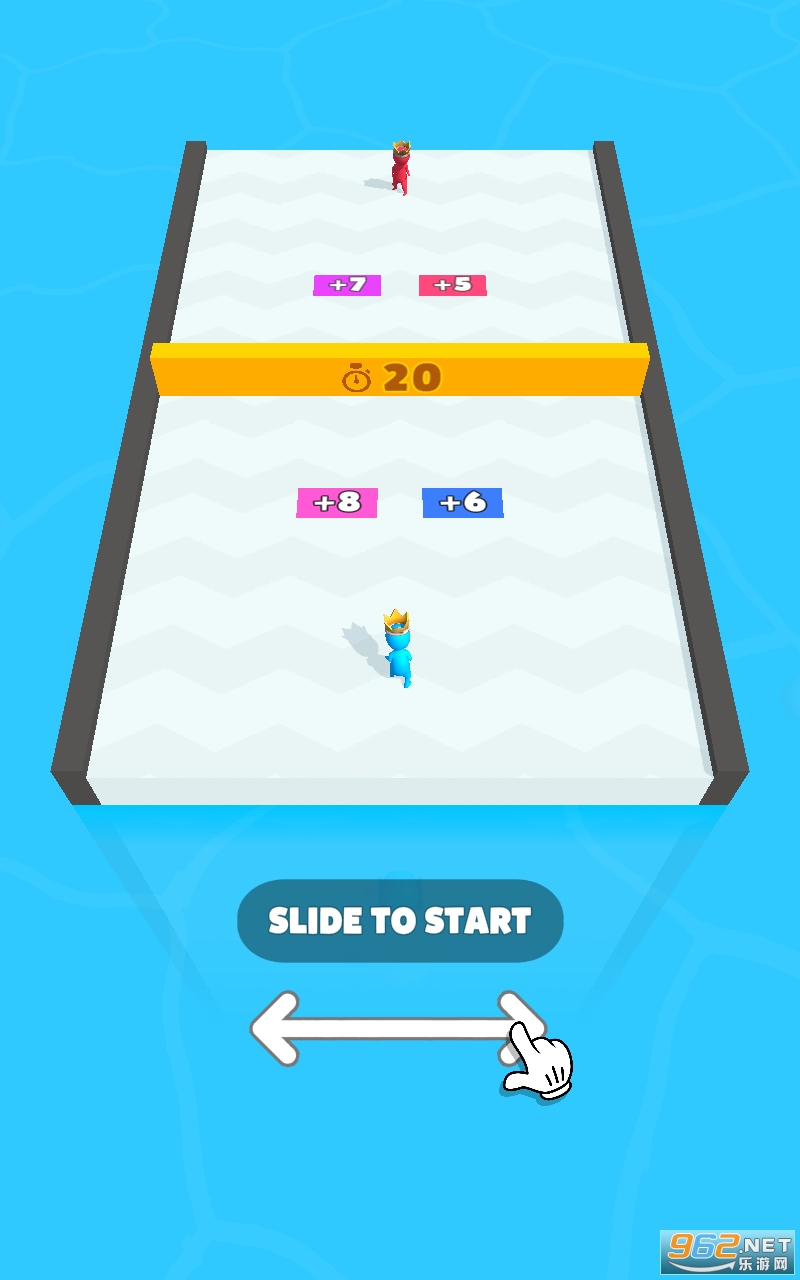 1、滑动屏幕移动小人经过带有数量关系的地面,这样就能增加自己的部队小人人数。