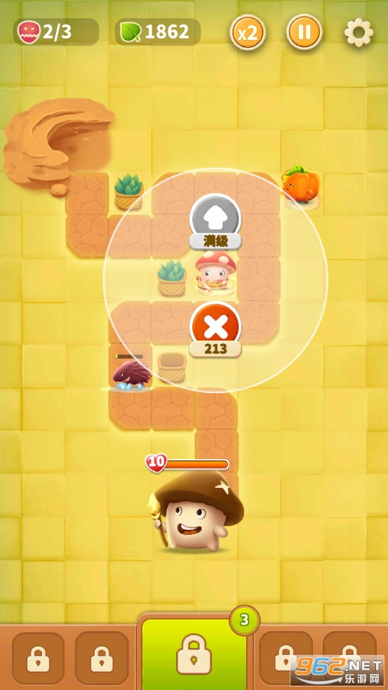 3.想要取胜就需要更多的智慧,灵活的使用策略布置蘑菇才能让你更轻松的通过关卡。