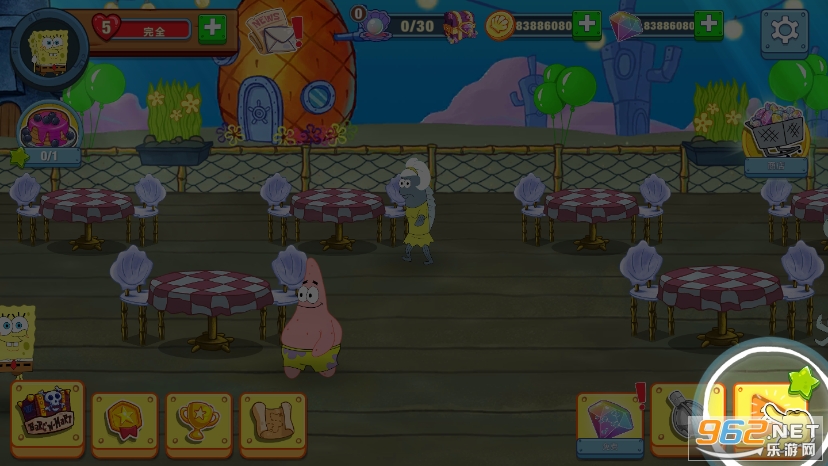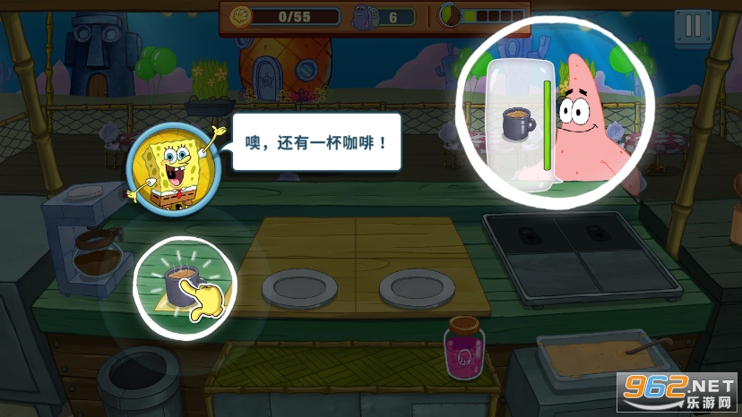 《spongebobkrustycookoff无限金币钻石版》是比较好玩的海绵宝宝餐厅经营游戏,玩家可以在海绵宝宝的家门口摆一个早餐摊,在蟹堡王制作各种各样的美食,在珊迪的树屋进行烧烤,解锁各种各样的道具,不断地升级你的餐厅规模,为海绵宝宝动画片中可爱的动物们制作出各式各样的美食!