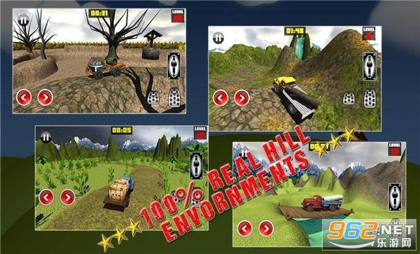 4.您将在这里挑战上坡和下坡、惊险的悬崖和山路,享受山地卡车最惊险刺激的驾驶体验。