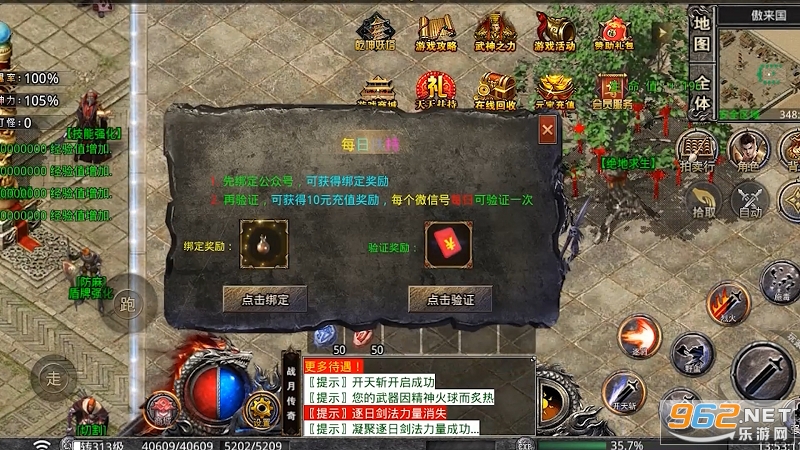 1、战士、道士、法师,多个职业的炫酷技能任你释放,相互配合还可打出超变态的组合技能;