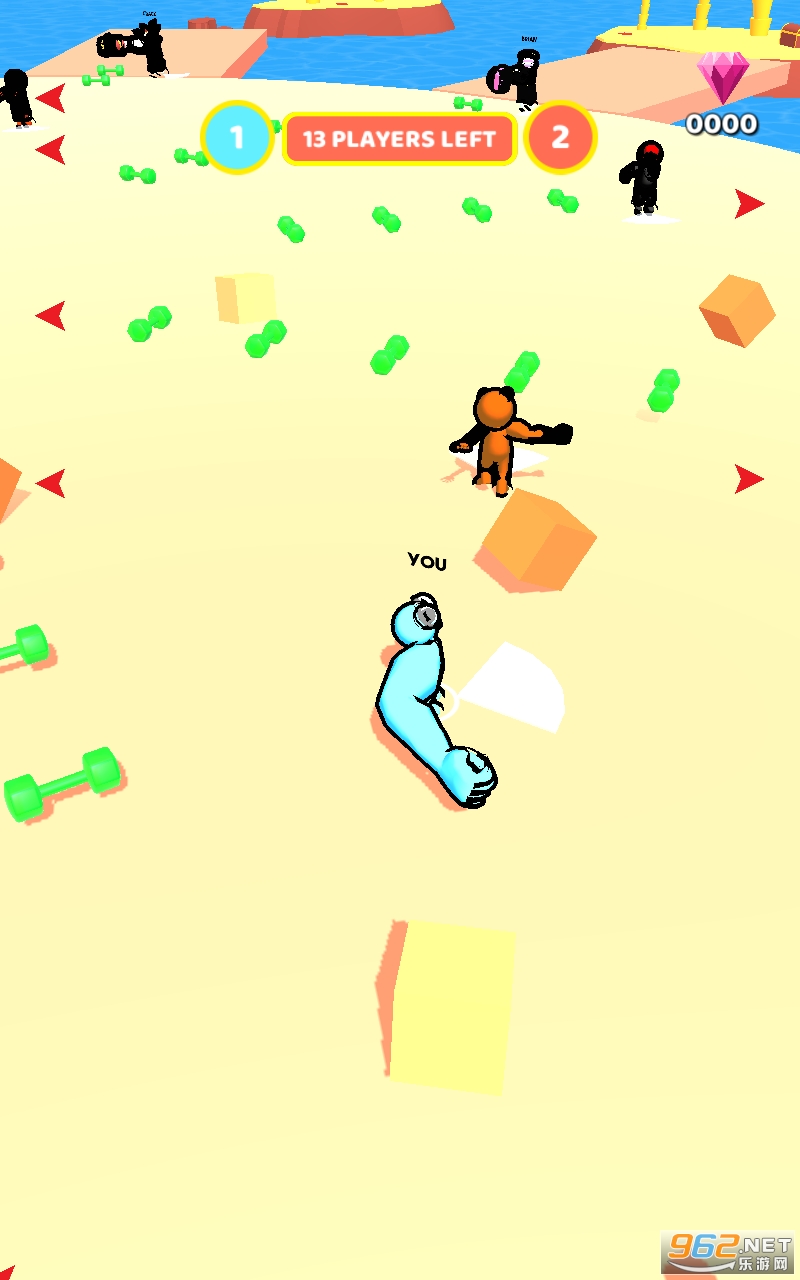3、将对手干掉并收获他掉落的钻石。如此操作直到消灭所有人。完成挑战任务。