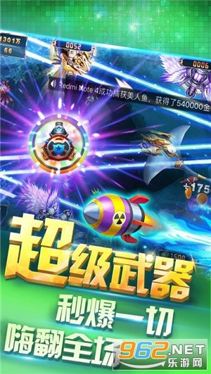 2、万炮捕鱼爽不停,极致简单操作,瞄准射击轻松捕获大鱼!