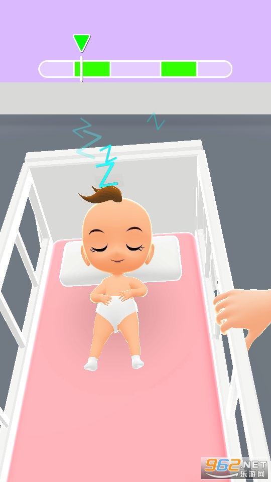 2、左右滑动屏幕,一定要滑到左右两边的绿色区域,注意掌握节奏,把哭闹的孩子哄睡着。
