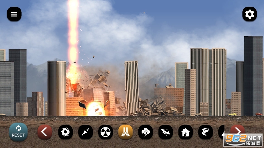 这个游戏是一个物理操场,在那里你可以用核弹,导弹,黑洞,激光束或闪电粉碎城市。