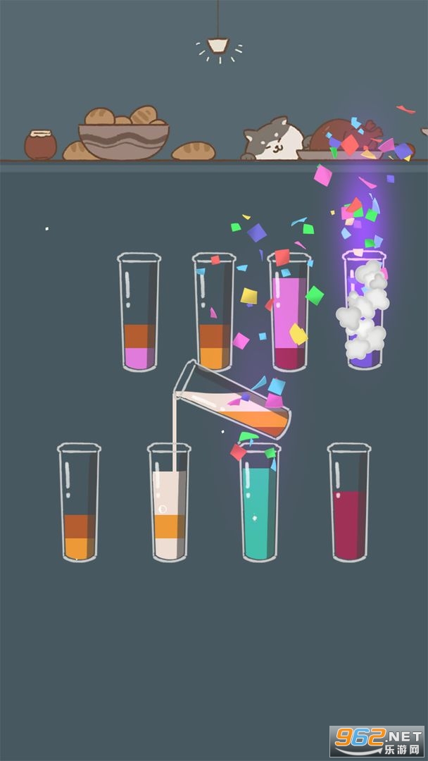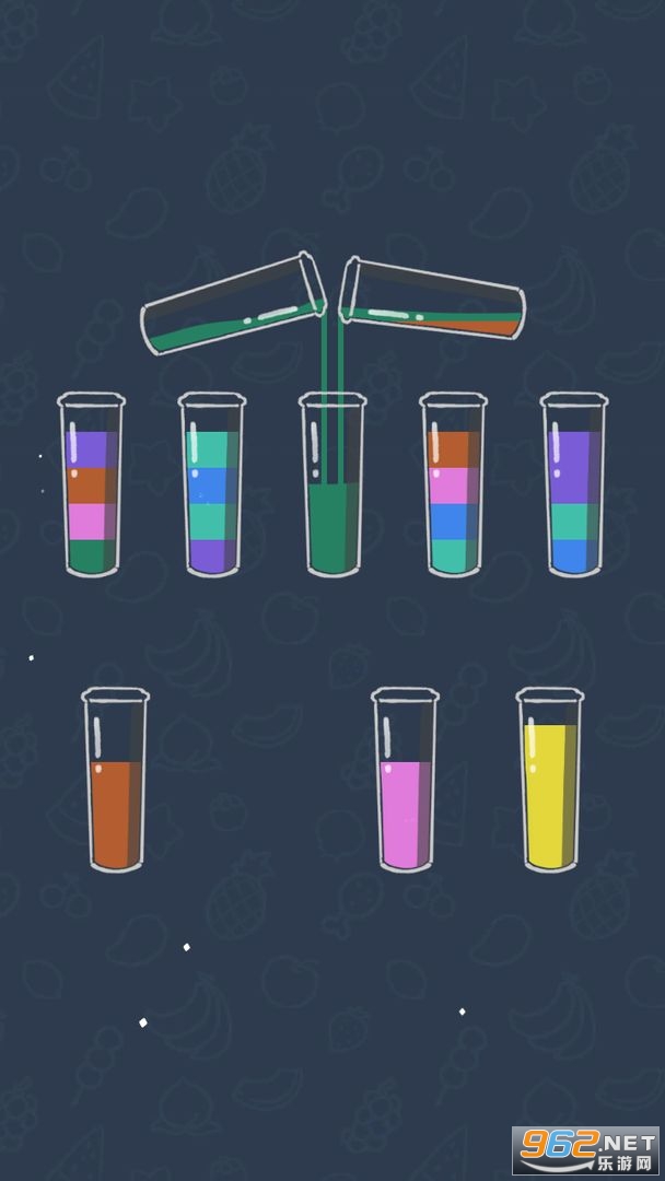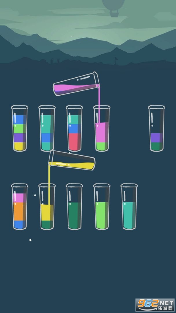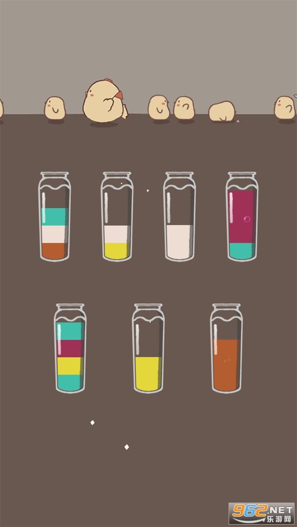趣味的排序游戏,玩家需要去倾倒这些试管中的液体,每个试管容量是有限的,玩家需要将液体导入其他还有容量的试管,并将颜色进行分类,形同颜色的都在同一个试管中,喜欢的朋友可以下载试试。