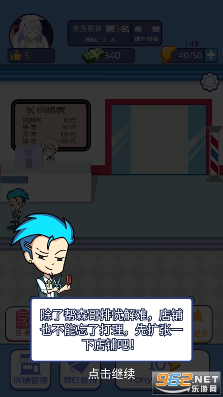 比较好玩的理发店经营游戏,操作非常的简单,画风比较的唯美,搞笑感十足,玩法充满了欢乐,大家可以在游戏中体验理发店经营的乐趣,不断地赚钱升级店铺,创造出各种杀马特的造型!