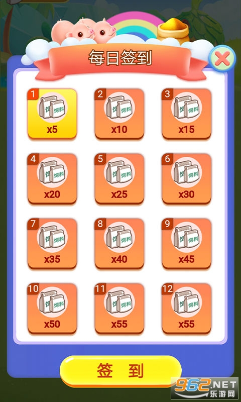 天天养金猪是一款深度还原模拟经营养成的休闲游戏,点点小猪每天就可以饲养收获出售小猪获得奖励,在游戏过程中,有不同的小猪供你饲养,每只小猪都有自己独特的技能和奖励,并且使用饲料还可以加速小猪的成长哦!快快进入小猪领取自己的小猪地块,开启你的养猪大亨模式吧!