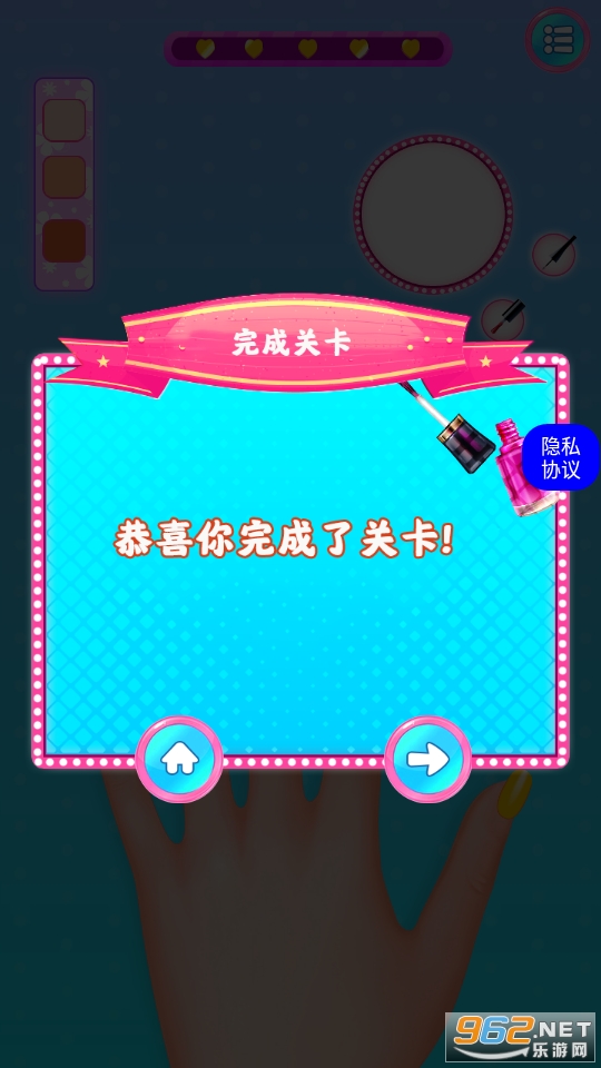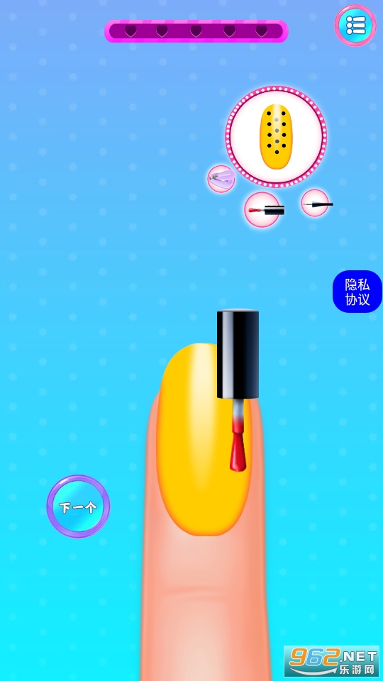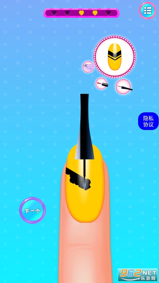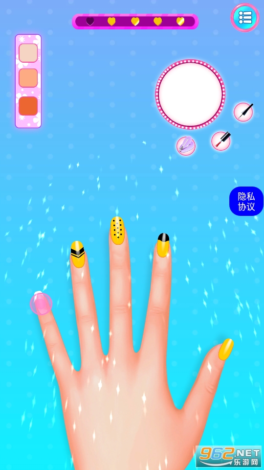 以美甲玩法为核心的休闲游戏,玩起来还挺解压的,玩家在游戏中可以选择进行闯关或者是自己diy设计出各种好看的美甲,快来下载吧!