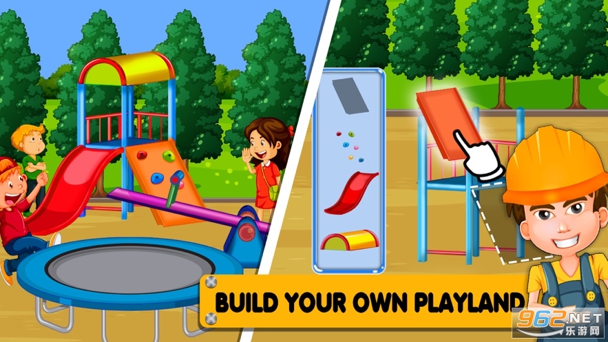 在这个游戏中,您可以为女孩和男孩建造游戏区。收集所有房屋建筑部件并将它们放置在此房屋建筑免费游戏中的正确位置。