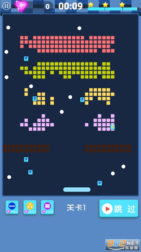 1、完美的街机风格引入,感受白球反弹的物理效果,粉碎更多的砖块;