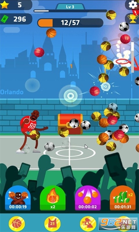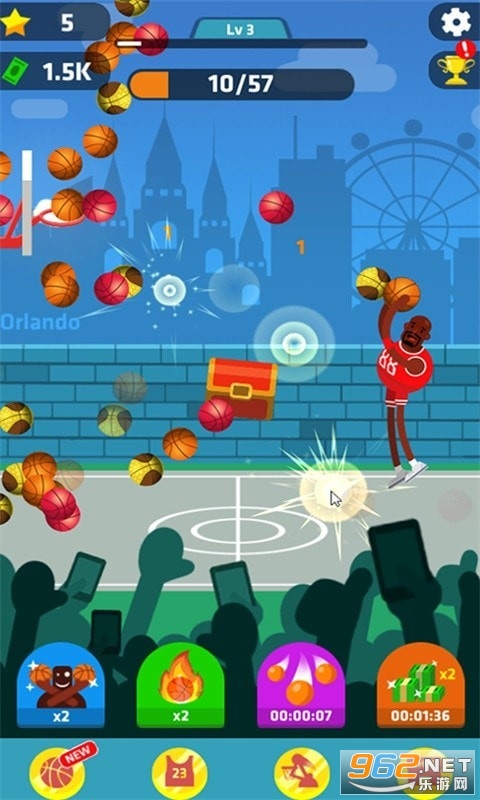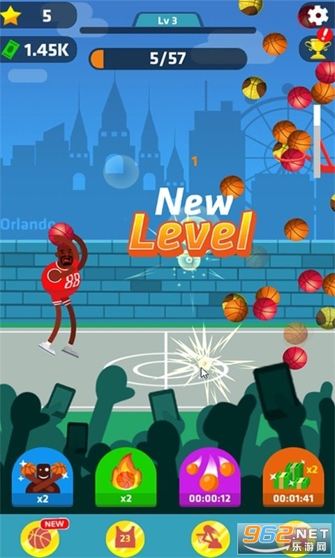 3、采用了2D竖屏的操作方法,玩家一只手就能轻松掌控,让你随时随地体验投篮快感。