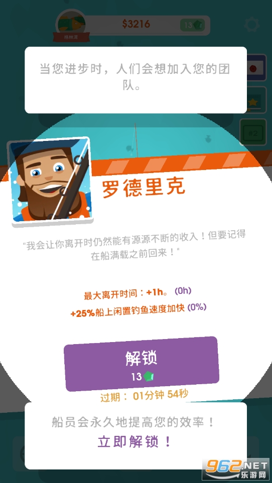每个船长都需要一个好船员!你的船员就是你的家人。雇佣并提升船员,以帮助扩大你的捕鱼帝国。每个船员都有自己独特的技能来帮助你捕鱼。