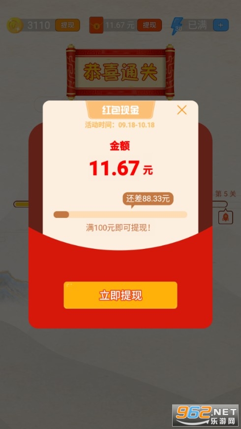 每天只需要花十来分钟的时间来答题闯关就能领到不少金币和红包,将赚到的钱全部存在里面,等到一定额度之后就可以提现了,其实关卡整体难度不大,都是大家所认识的成语,目的一个是为了巩固知识学习掌握知识,一个是为了让你收获到快乐。