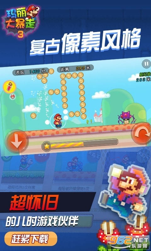 《玛丽大暴走》是一款还原经典的像素冒险游戏,玩家一路冒险去拯救公主,经过重重险阻,角色拥有华丽的攻击技能,画面超棒,感兴趣的来下载吧。