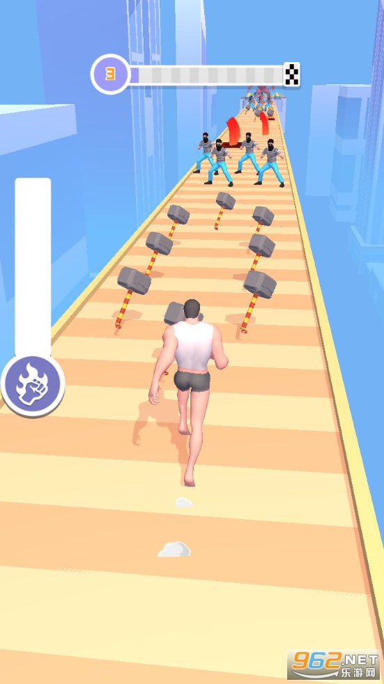 猛男大暴走游戏是一款卡通趣味的跑酷闯关游戏,从一个光棍屌丝,想要成为强大的猛男,你需要在奔跑的过程中,不断的训练自己的力量,去拾取更多的装备和当局,让自己拥有更强的战斗力,消灭出现的怪物,证明自己的实力,快来解锁更多赛道关卡吧。