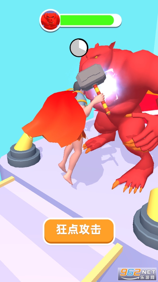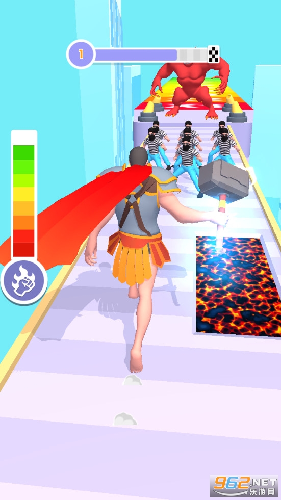 《猛男大爆走游戏》是长沙趣游网络科技有限公司推出的一款敏捷跑酷闯关手游,游戏中玩家将控制一个壮男冒险,前方道路上会出现大铁锤、盔甲和披风道具,玩家需要敏捷的去收集这些道具让角色华丽的变身,击败沿路拦路的敌人,疯狂点击击杀最后巨大的boss,成功闯关。