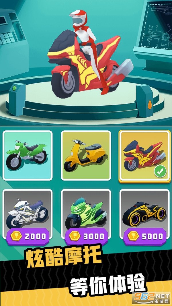 1、最新赛车比赛,设计休闲的摩托车,直接能控制角色,然后体验最新赛车。