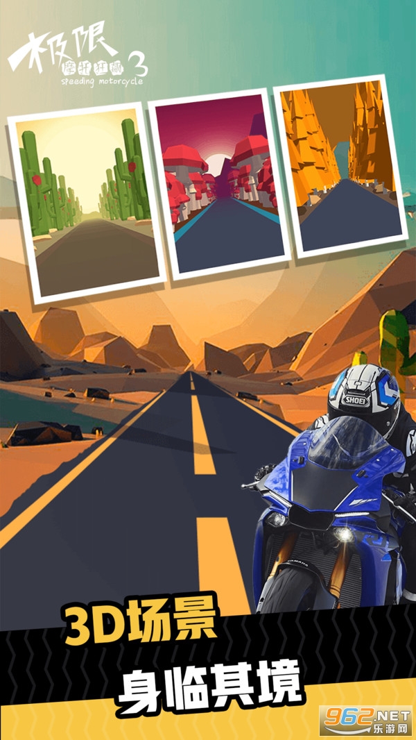 极限摩托狂飙3是一款很特别的可以调节视角的摩托竞速游戏,全新的第三人称视角带你享受更真实的飙车快感! 在游戏中你能体验到紧张刺激的摩托比赛,合理运用刹车躲避障碍物以及使用加速完成超车是获胜的关键,还有多款角色和摩托的皮肤可以使用,让我们向冠军的宝座冲刺吧!