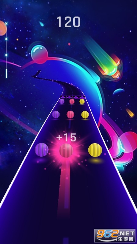 要想玩好这款游戏需要玩家有一定的节奏感才行,只有找到了节奏然后注意力稍加集中一点就能创造好成绩,在音轨上疯狂撞击相同的彩球,不断会发出美妙的音符,还会伴随着酷炫的特效,场面相当震撼,玩起来非常解压。