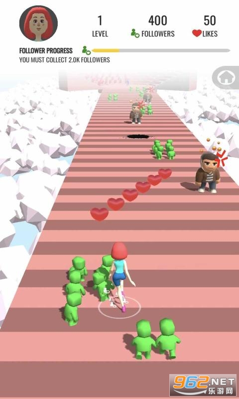 《影响者酷跑InfluencerRun》是一款轻松好玩的跑酷闯关游戏,加入到跑酷大军中来吧,展现出你足够的跑酷天赋,在跑道上灵活的走位移动,避开路上的障碍物,同时还能收获一批批忠实的粉丝,他们会追随你一起完成跑酷冒险,尽可能不要出现失误,把机会留到更难的地方。