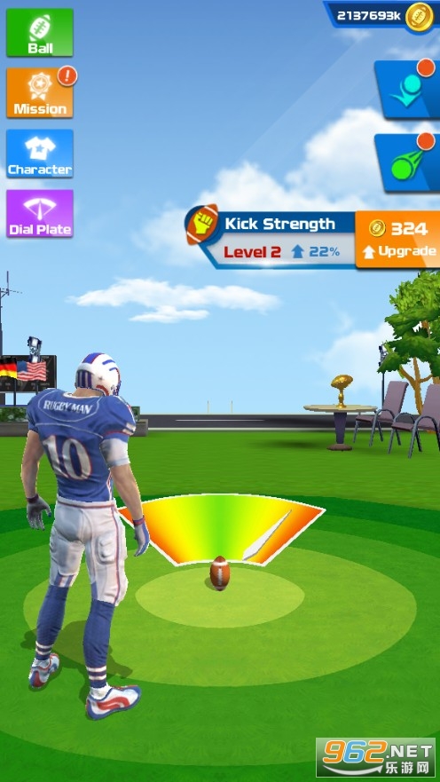 《愤怒的橄榄球Football Field Kick》是一款发泄压力的游戏,操作你的橄榄球运动员用脚踢橄榄球,你没有听错就是使用脚来踢,用尽全身力气去踢面前的橄榄球,尽可能的踢得更远,距离越远积分越高,最后得到的金币奖励和道具奖励也就越丰厚,使用金币还能对我们的运动员进行升级哦。