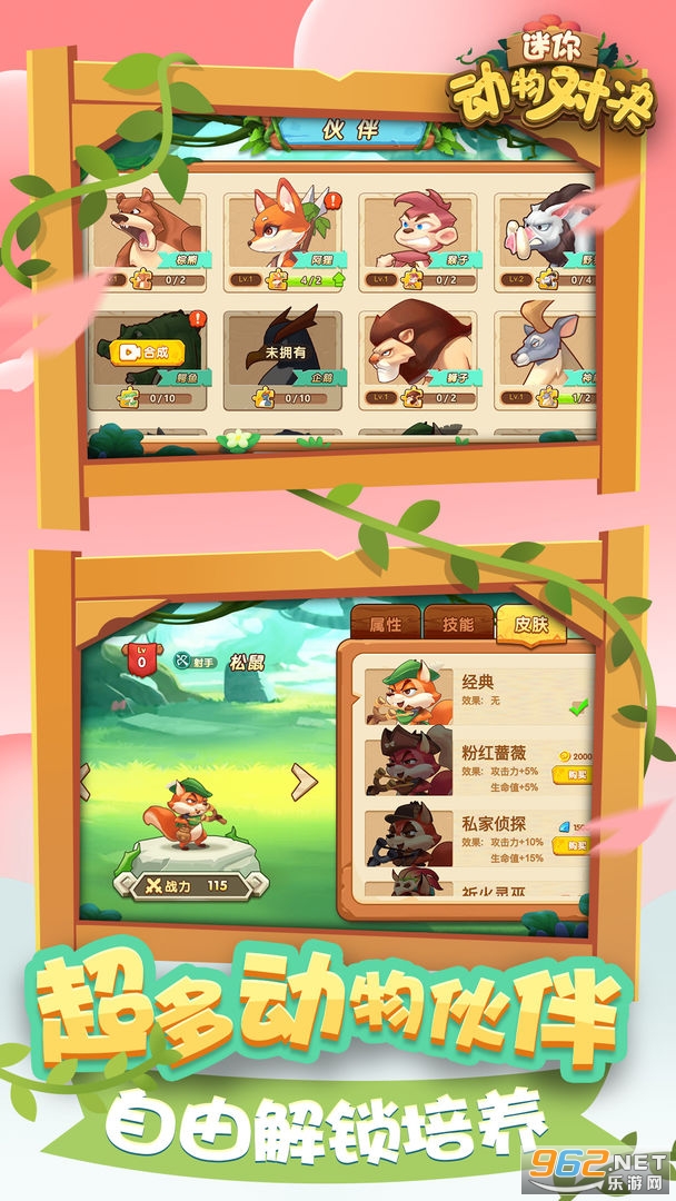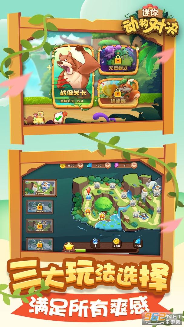 1.收集游戏中的动物伙伴进行战斗,挑战游戏中的关卡,赢得游戏的胜利,获取更多的奖励。