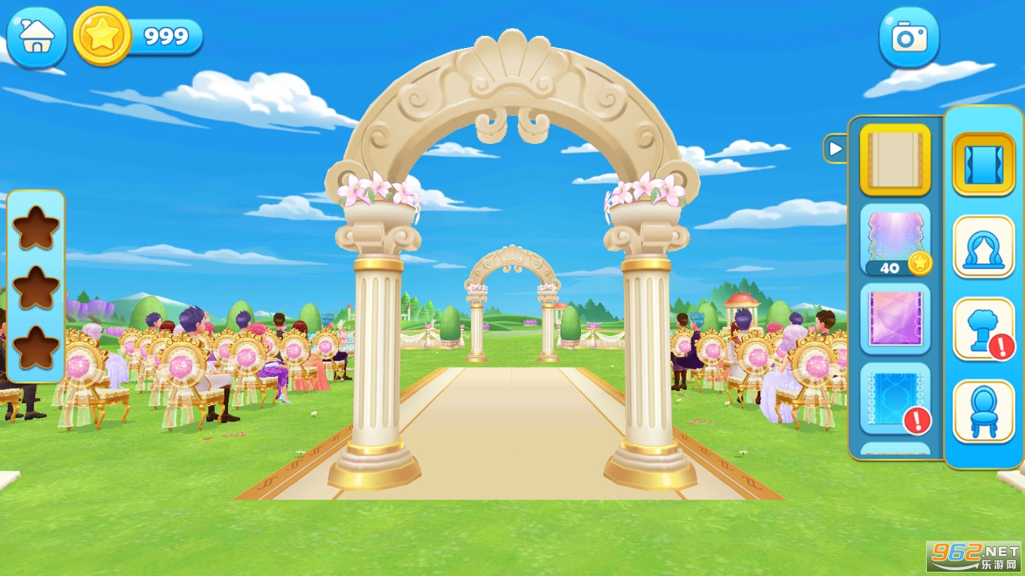 一款非常有趣的皇家婚礼模拟游戏,在这款游戏中你将举办一场华丽的婚礼,你可以选择各种各样不同的装饰,完成不同场景的布置,最终成功举办婚礼,游戏的玩法丰富有趣,还可以自由的换装,推荐给喜欢休闲游戏的玩家。