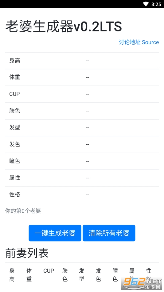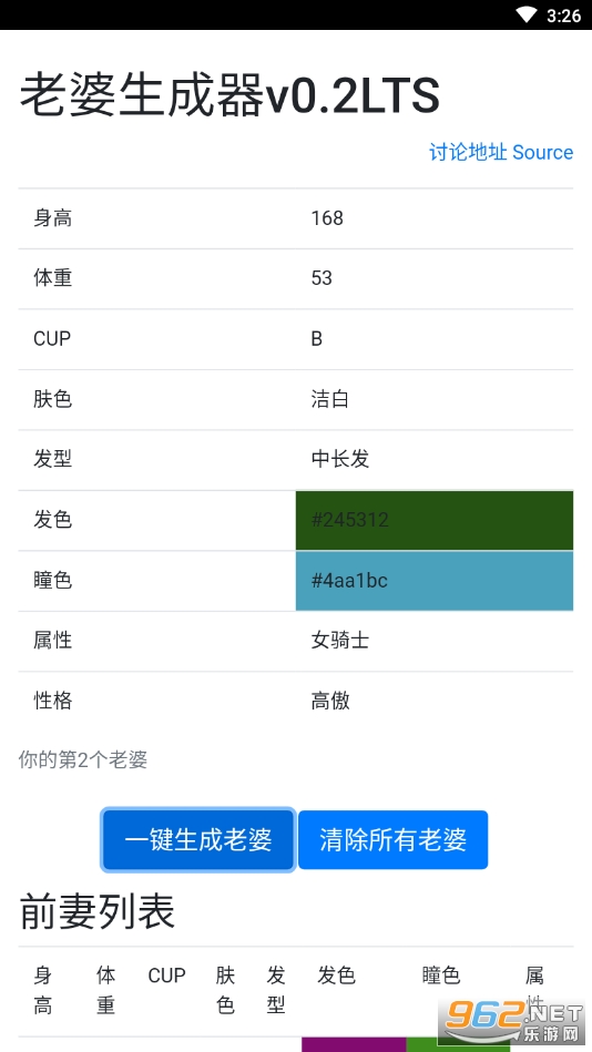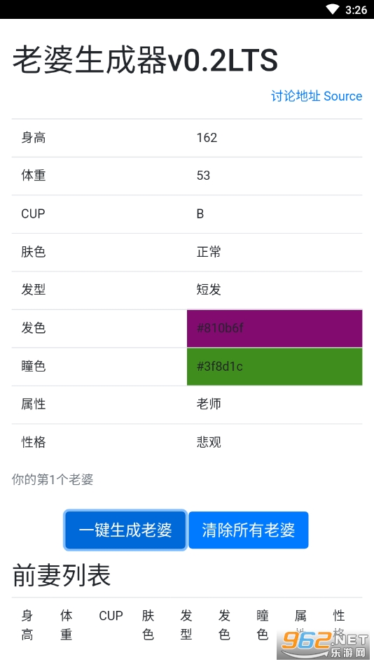 根据自己自己理想的老婆的身高体重还有cup、肤色、发型、同色、属性以及性格。填写相应的数据,一键点击,既可以生成你理想中老婆的样子!