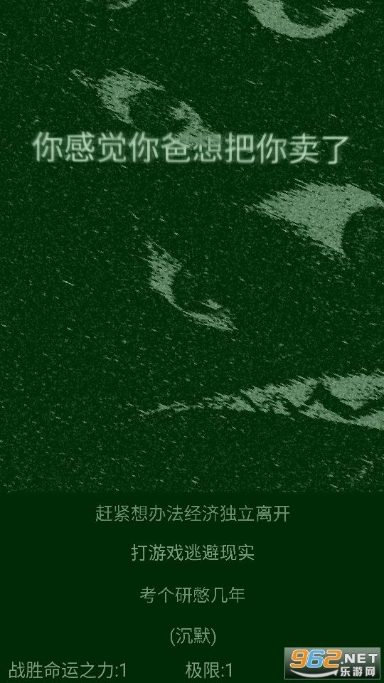 比较独特的一款游戏,但是有点致郁,并不建议真的觉得自己原生家庭不好的人玩,画面看着会让人觉得很沉重,选择的一些文字以及选项也非常贴近现实。