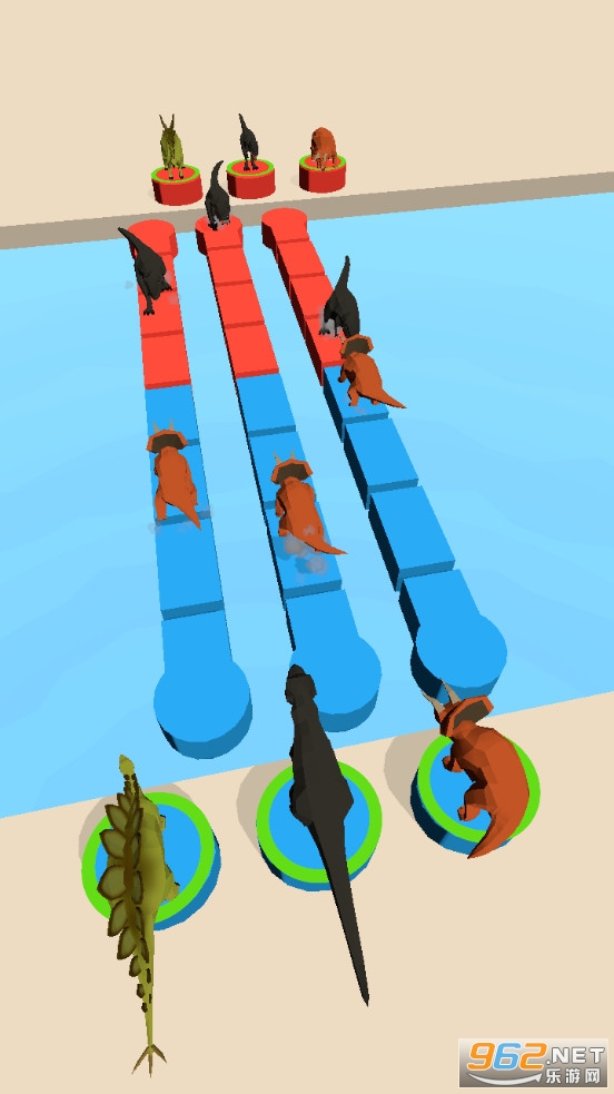 恐龙对战游戏,合理的派出恐龙去战斗,击败对手向前移动,最后到达终点取得胜利,游戏与voodoo的我要推倒你游戏玩法类似,一个是派遣恐龙一个是派遣士兵,喜欢的朋友可以下载试试。