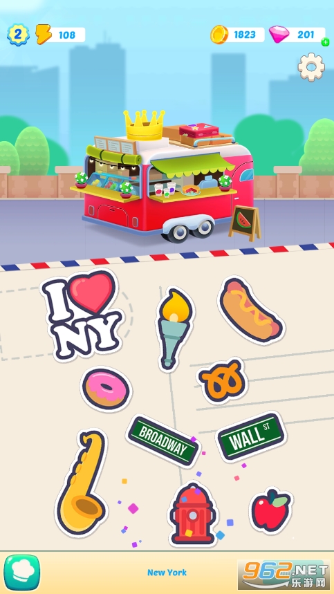 非常简单的一款餐车经营游戏,画风看起来比较的可爱,玩法超级简单,玩家通过合并的形式不断地解锁不同的食材,满足顾客的需求,完成任务,升级餐车,解锁更多更复杂,更美味的食物,去往不同的城市收集图鉴!