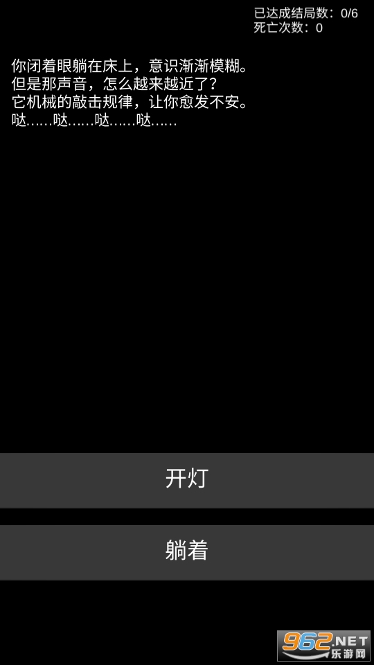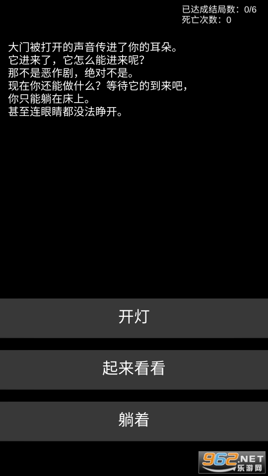 暗黑风格的文字解谜类的休闲游戏,如果不听声音没有背景音效烘托的话是完全没有恐怖气氛的,不过实在是比较容易死,尝试一下冒险努力的活下去吧。