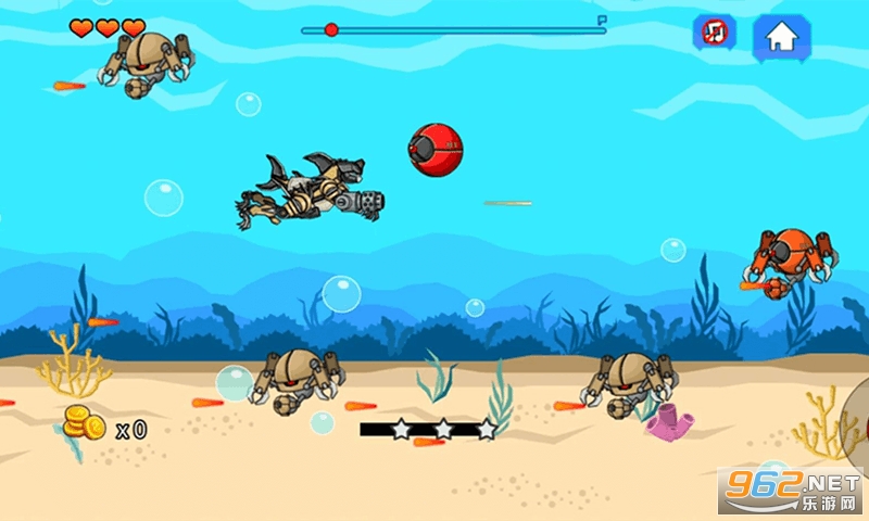 展示自己的动物本能呢!控制机械鲨鱼,寻找宝藏和攻击敌对的机器人。未来真正的海盗行动!
