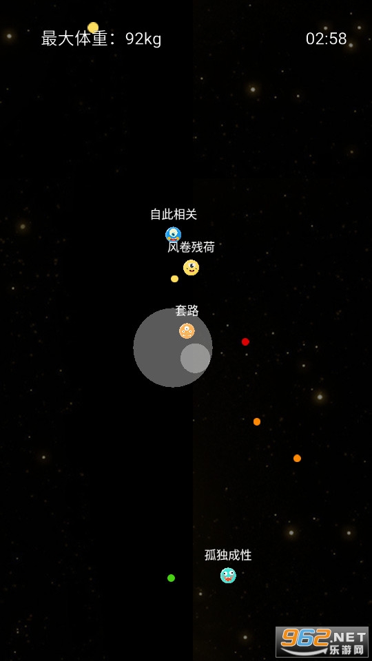 3、移动球球,合理控制运动路径吃掉五颜六色的小小球,让自己变胖变强!