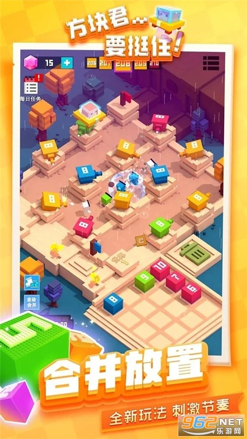 2、游戏的玩法非常的简单有趣,收集大量的金币来升级合成你的方块君