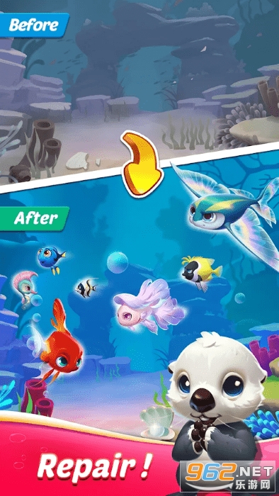 海洋派对比赛是一个趣味性的挑战方式的休闲玩法,是时候体验前所未有的海底世界带来的刺激和奇观了!用充满活力的水族馆创造您的海底世界!快来玩海洋派对比赛。装修水族馆时,为可爱的鱼儿创造舒适的家。尝试具有独特难题的具有挑战性和趣味性的三消游戏,立即潜水,并在鱼缸中养育漂亮的鱼。