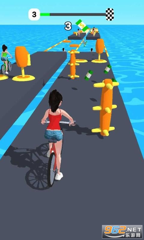 《女孩接力赛3D》是一款精彩好玩的跑酷类游戏,官方将好几种运动项目整合在一起,小姐姐们需要在跑道上接力完成这些项目,障碍赛、直线冲刺、自行车障碍、皮划艇、独木桥、水上撑杆跳等等,虽然是接力完成,但所有的小姐姐都需要你来操作,帮助她们完成这些项目。