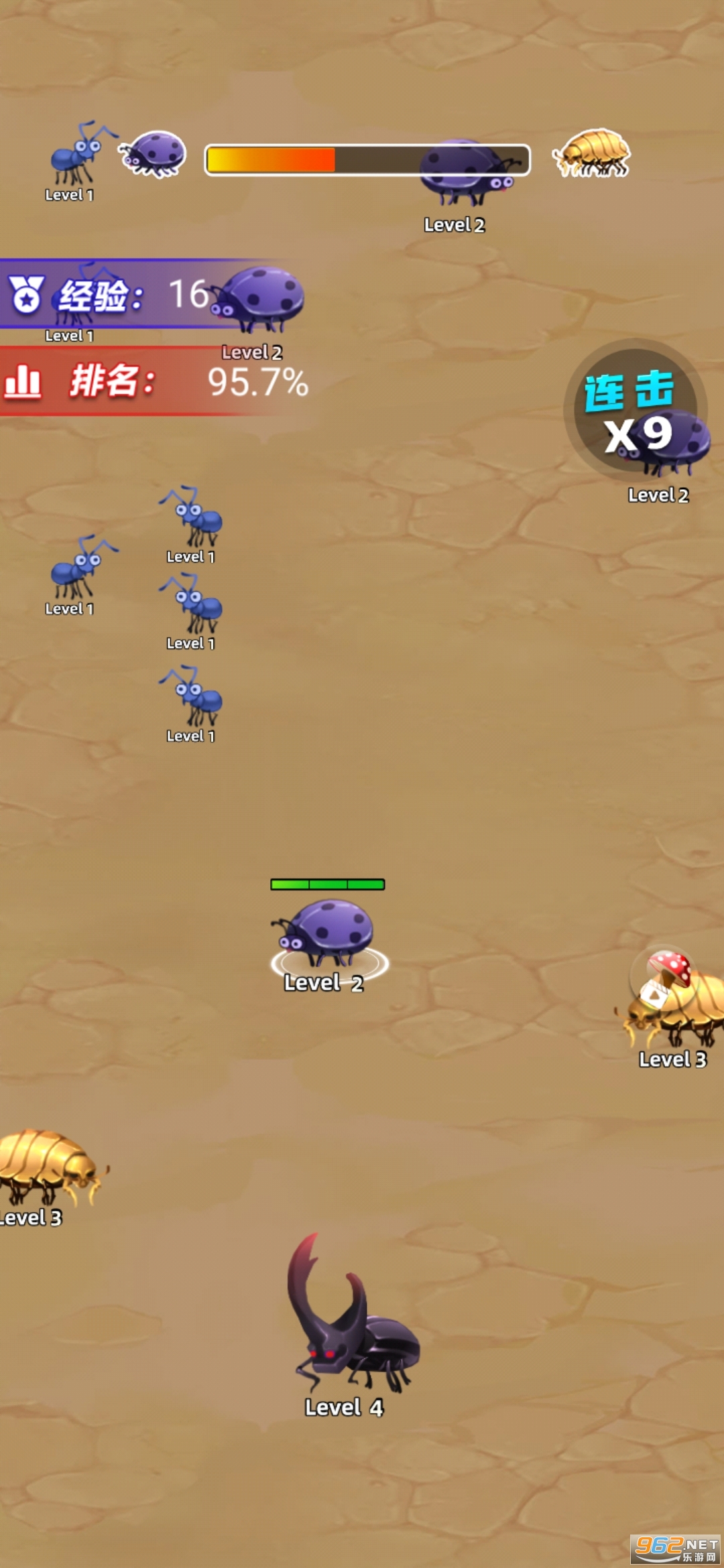 5、随着等级的提高而加速。多种交互模式和进化等你来解锁。快速移动和升级昆虫需要一些金币;