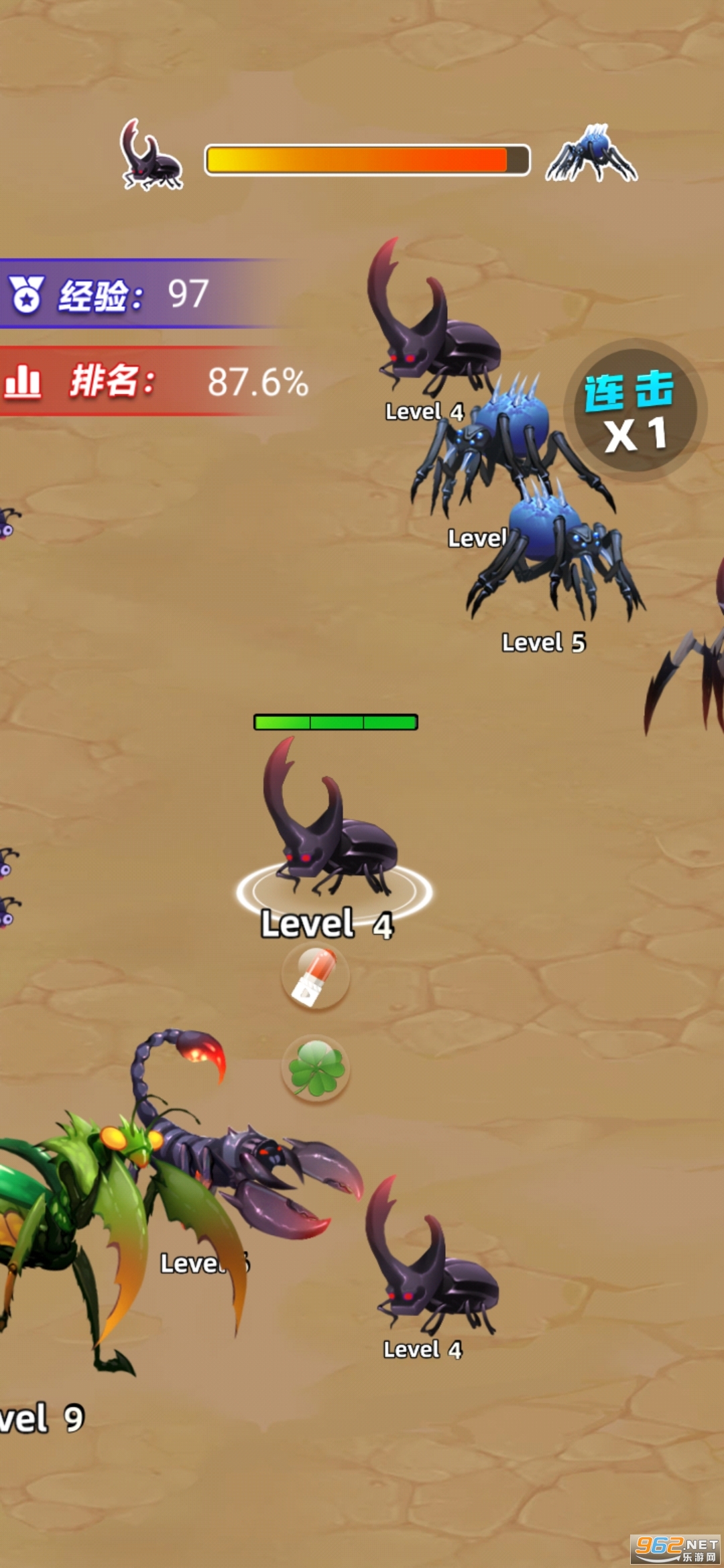 这是一款非常好玩的休闲吞噬游戏,在欢快的背景音乐声中操作你的昆虫疯狂吞噬进化,长成最大的昆虫,这样你就能所向披靡成为竞技场上的王,大家如果对这款吞噬游戏感兴趣的话快快点击下载吧。