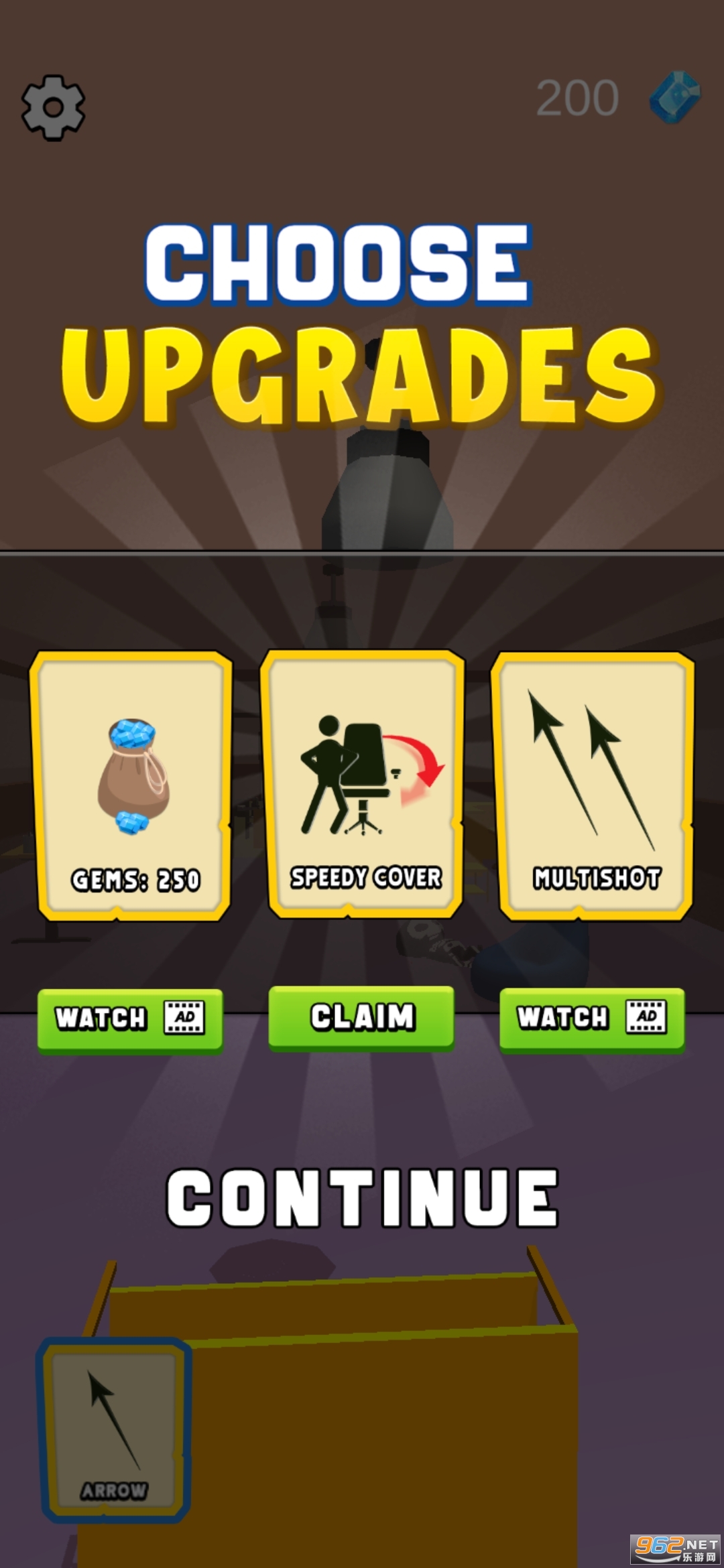《箭大师弩射手》是一款优秀的弓箭射击闯关游戏,射击冒险的场景发生在一栋建筑物之中,每一层就是一个全新的关卡,即开即玩灵活的走位与敌人对战,能使用的武器除了弓箭之外还有杀伤力更强的弩,完成任务快速解锁更高阶的弓箭和弩,能让你的战斗力更强。