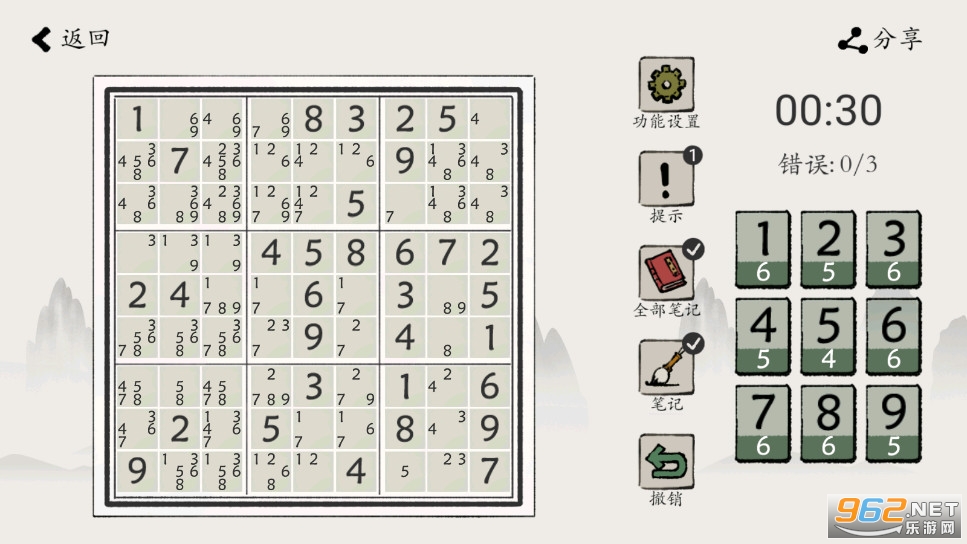趣味的数独游戏,数独是比较难的一种游戏,可以用来锻炼我们的大脑,本款游戏将数独与汉字相结合,加入了治愈轻柔音乐和水墨国风,喜欢的朋友可以下载试试。