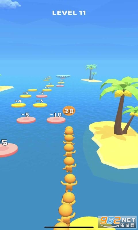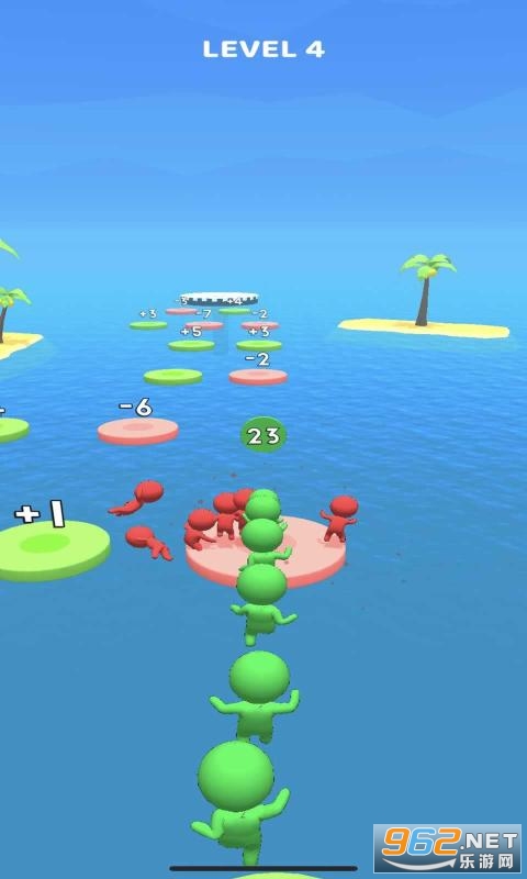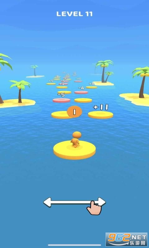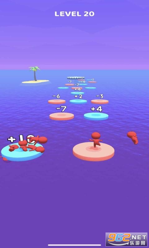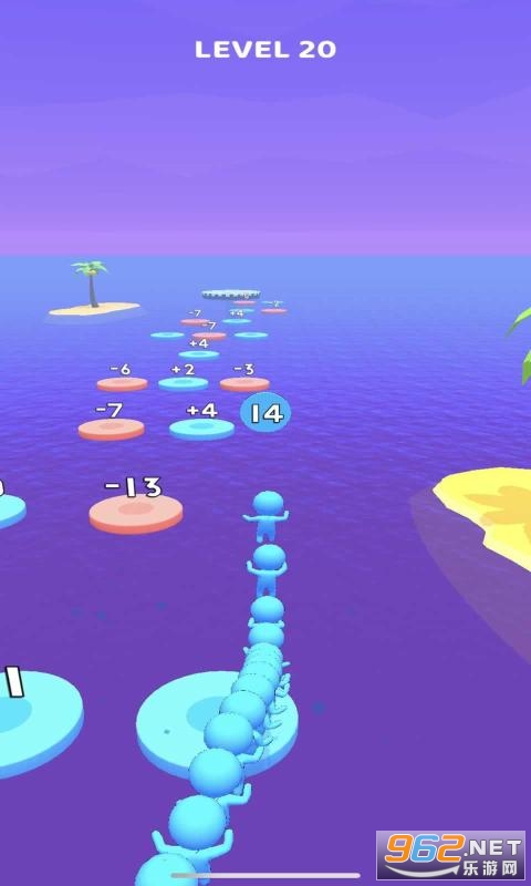 蹦蹦跳跳是一款十分有趣的敏捷游戏。在游戏中,玩家需要从一个平台跳到另一个平台上,平台上的数字意味着会在玩家本身的数量上加上或减去对应的数额,最后到达终点的时候,玩家会发现身边跟着好多的小伙伴。注意不要掉入海中并到达安全终点喔。感兴趣的小伙伴们快来下载试试吧!